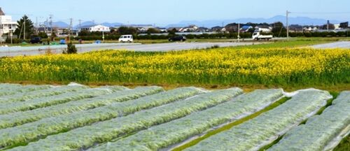 写真、どこでしょう。 奥の方から、ぼんやりとした島影は長崎、農作業をする人、菜の花、そしてレタス。 霜よけの布がかぶせてあります。 . . 苓北町。 川の右側にサギ、左側の堤防の上に小鳥。 望遠でのぞくと、カワセミでした。めずらしい。 ここは河口で…