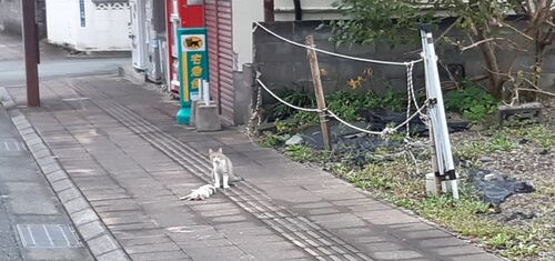 早朝配達の帰りです。 ネコが立っており、ジッとして動かない。こっちを見ている。 傍らには、小さな、 横たわっていた子ネコの頭はつぶれていたように見えた。 どうやら車にひかれたようだ。かわいそうに。 母ネコだったかもしれない。毛色は似ていた。 . …
