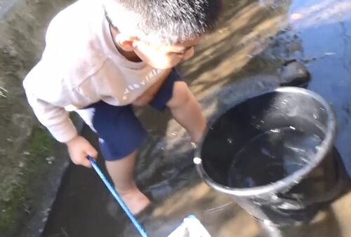 コロナの関係で、急に孫を見ることになり、近くの用水路にメダカを取りにいきました。 小さい黒いメダカ10匹ぐらい、小さいエビ2匹とれました。 孫っち初体験。 .