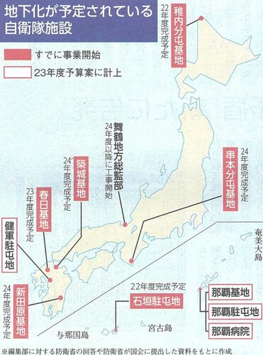 自衛隊基地 次々と 地下化 恐ろしいことです。 今週の「赤旗」日曜版です。 基地を地下に移すという事は、周辺は戦場になるということです。 ウクライナ戦争のニュースを見ると、相手の軍司令部や弾薬庫を標的となり破壊したなど報道されます。 熊本市の健軍…