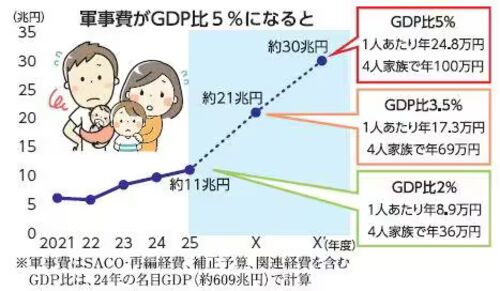 今日の「赤旗」1面です。 これまで長い間の自民党政権はGDP1%以内で賄い、その分の国力を経済に向け発展してきました。 ところが2022年、米国の要求どおりに軍事費をGDP比2%の11兆円をしようと拡大しつづけています。 11兆円は、国民一人当たり約9…