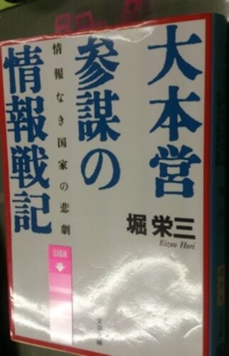 大本営参謀の情報戦記−掘英三著(文春文庫)を読んでいます。 この方、日本の陸軍の大本営の参謀・情報部だった人で、戦後は陸上自衛官で陸軍中佐、陸将補になった人。大本営参謀の情報戦記―情報なき国家の悲劇 (文春文庫)作者: 堀栄三出版社/メーカー: 文藝…