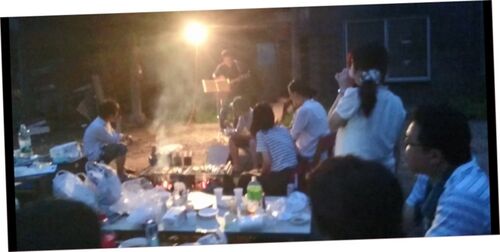 「誕生会」、私じゃありませんで、友人のやまべひろしさんです。私の家で。 仲間ら十数人があつまってくれました。バーベキューでした。 久しぶりに私も簡単な「やまべさん紹介」のプレゼンをしました。テーマは「JUMP」(忌野清志郎)です。(写真・震…