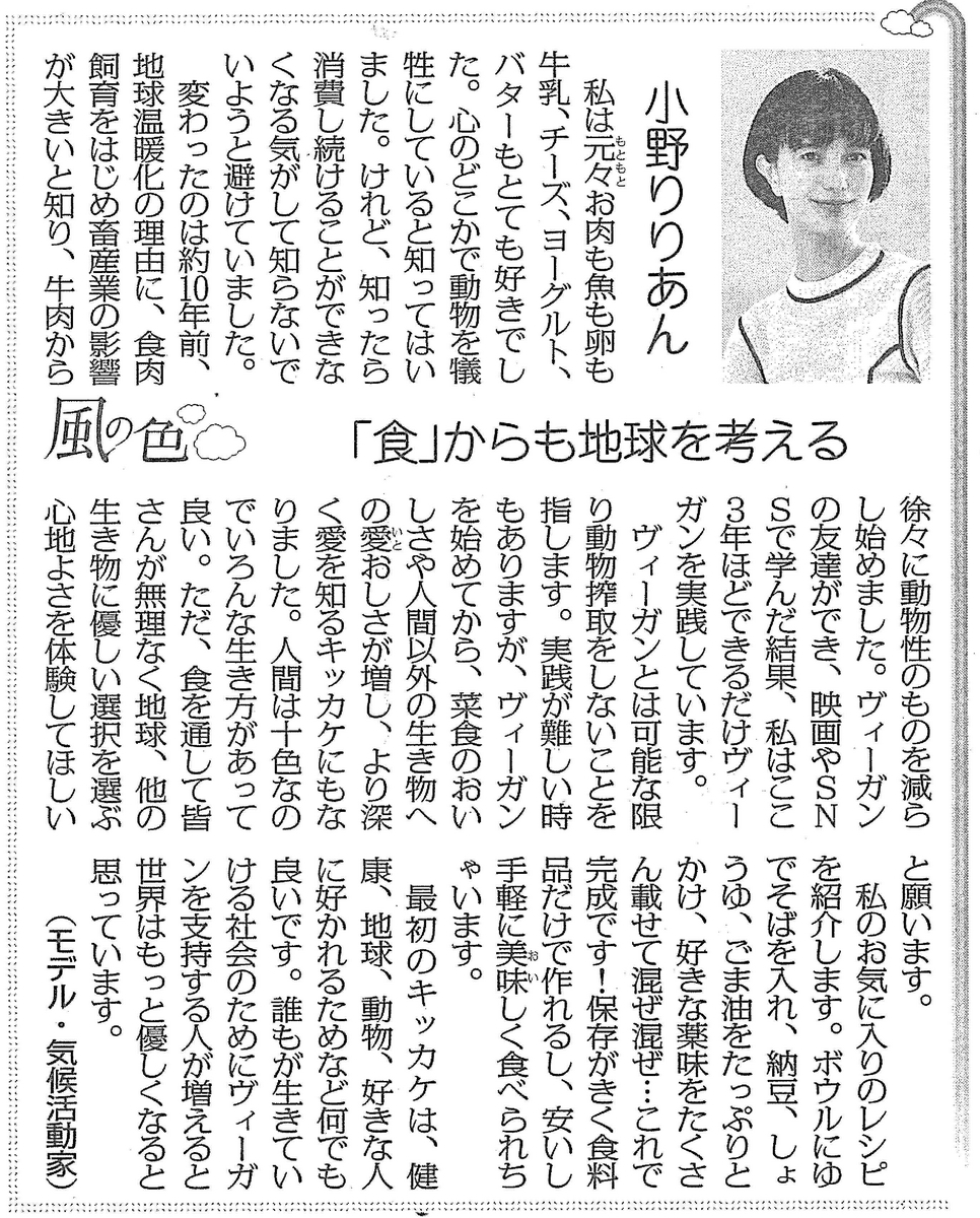 モデル・環境活動家の小野りりあんさんが囲み記事になっています。